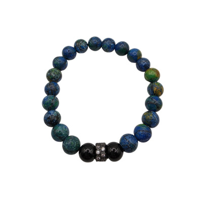 8mm Blue Yellow African Turquoise with Black Onyx Beads