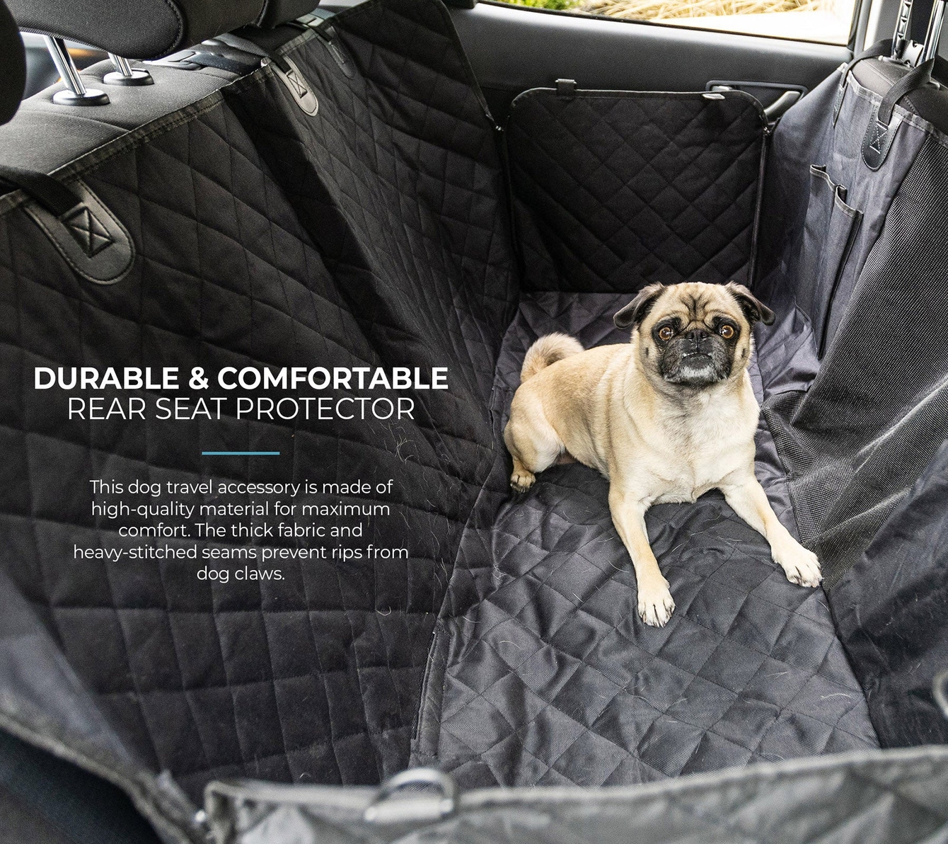 - Durable & Comfortable Rear Seat Protector – made of high-quality material for maximum comfort. The thick fabric and heavy-stitched seams prevent rips from dog claws.