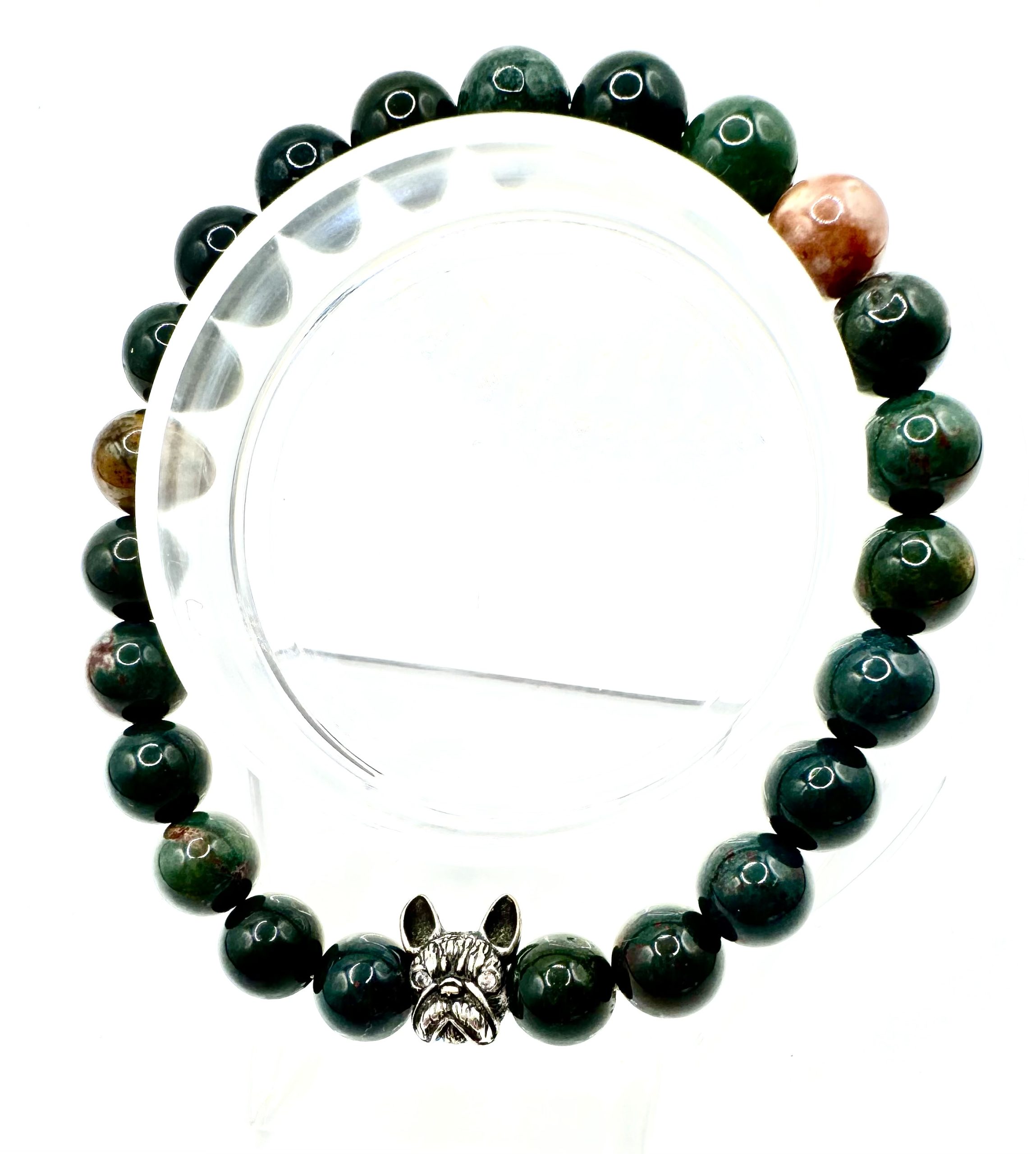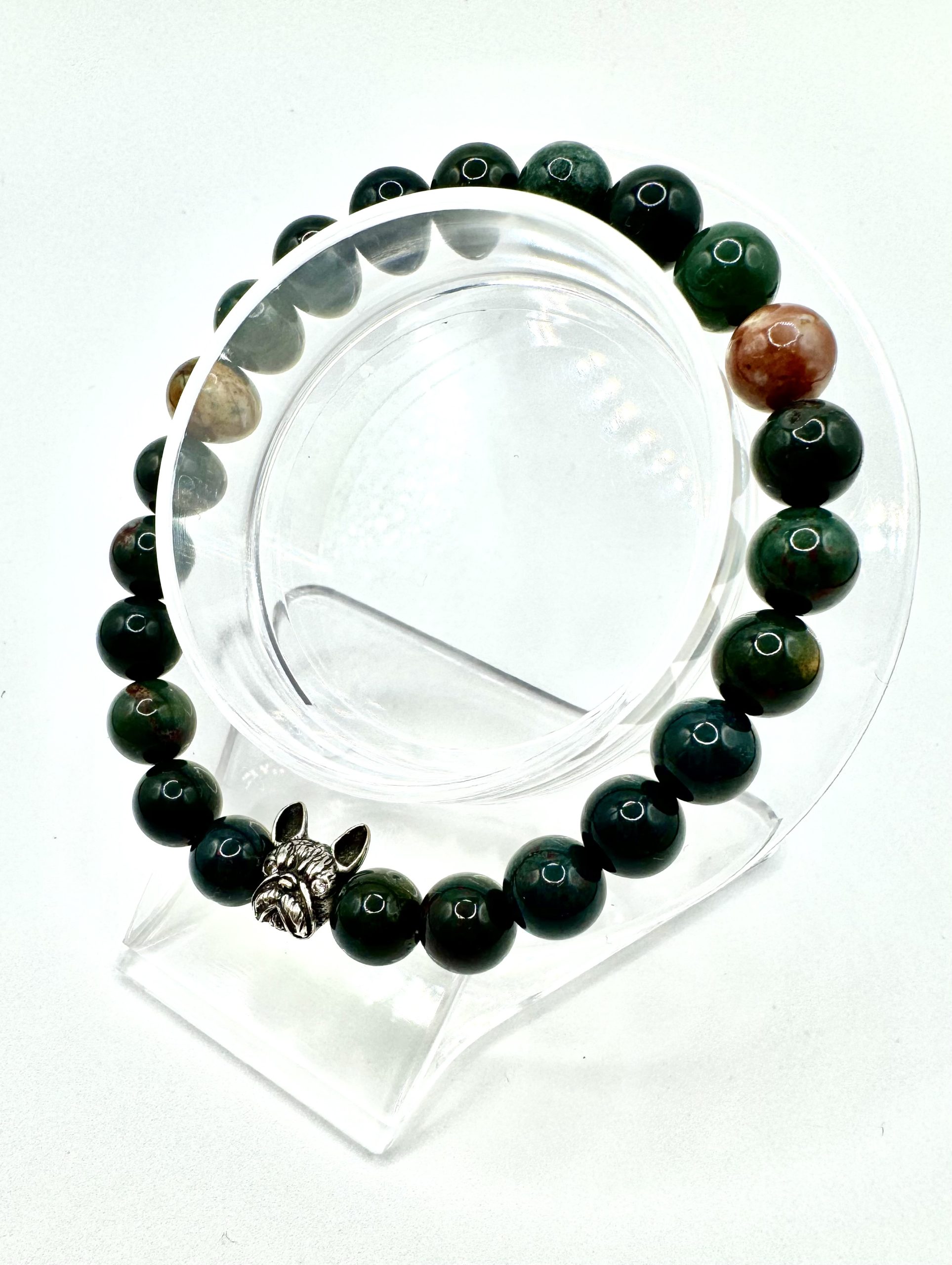 Blood Stone Stone Bracelet with Frenchie Charm quantity