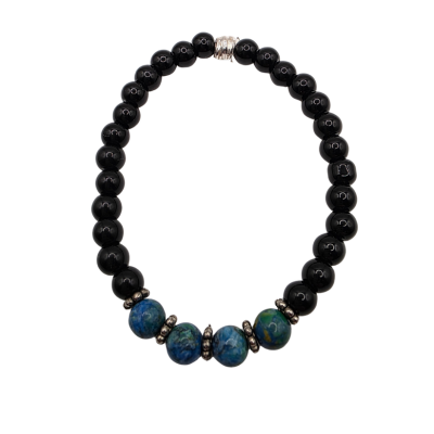 Blue Yellow African Turquoise and Black Onyx Beaded Bracelet