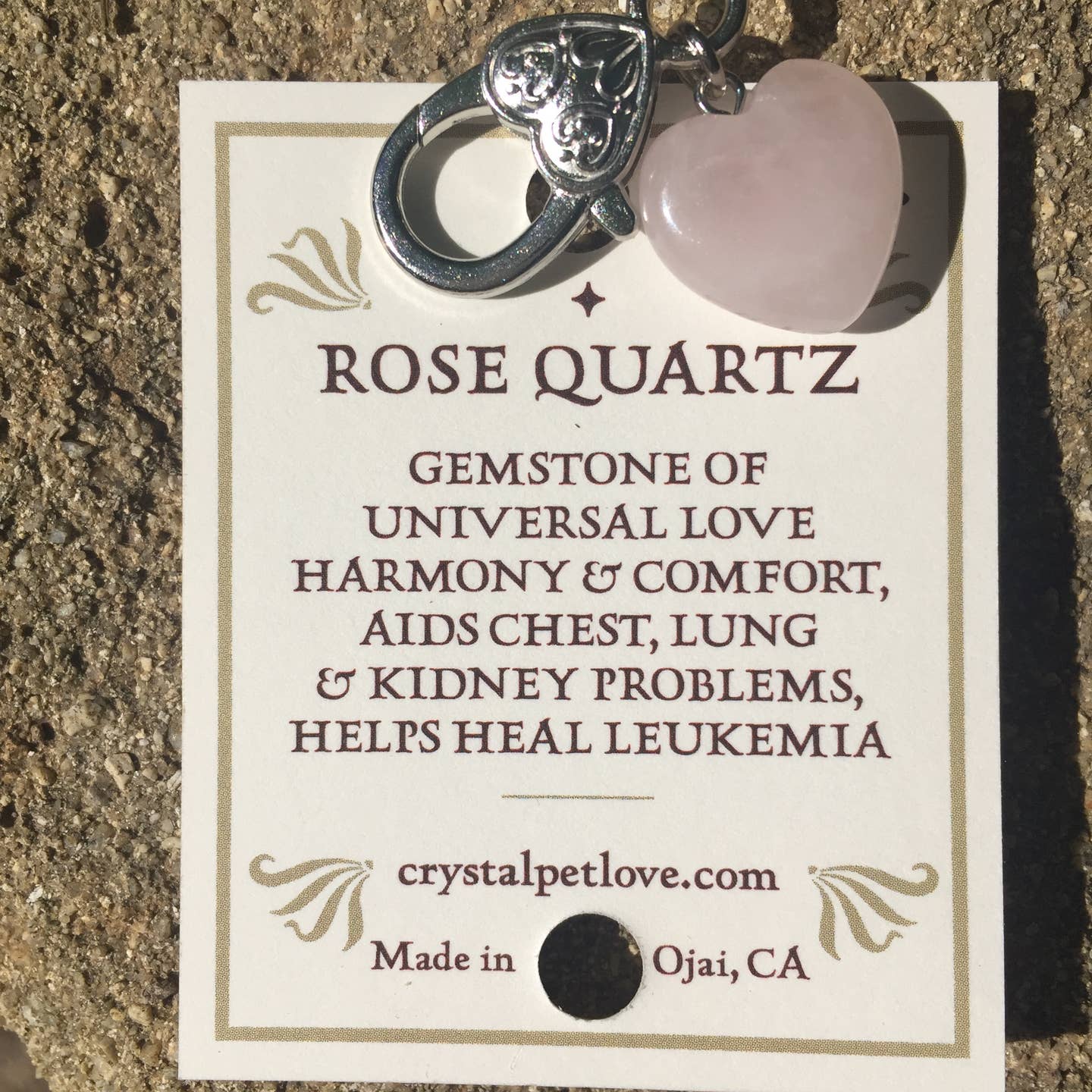 Rose Quartz is the universal gemstone of love. This warm pink heart promotes harmony and comfort for the wearer. Rose Quartz has been known to aid chest, lung and kidney problems and to act as a force against leukemia. Imagine this Rose Quartz pendant filling your pet’s heart with warm pink light.