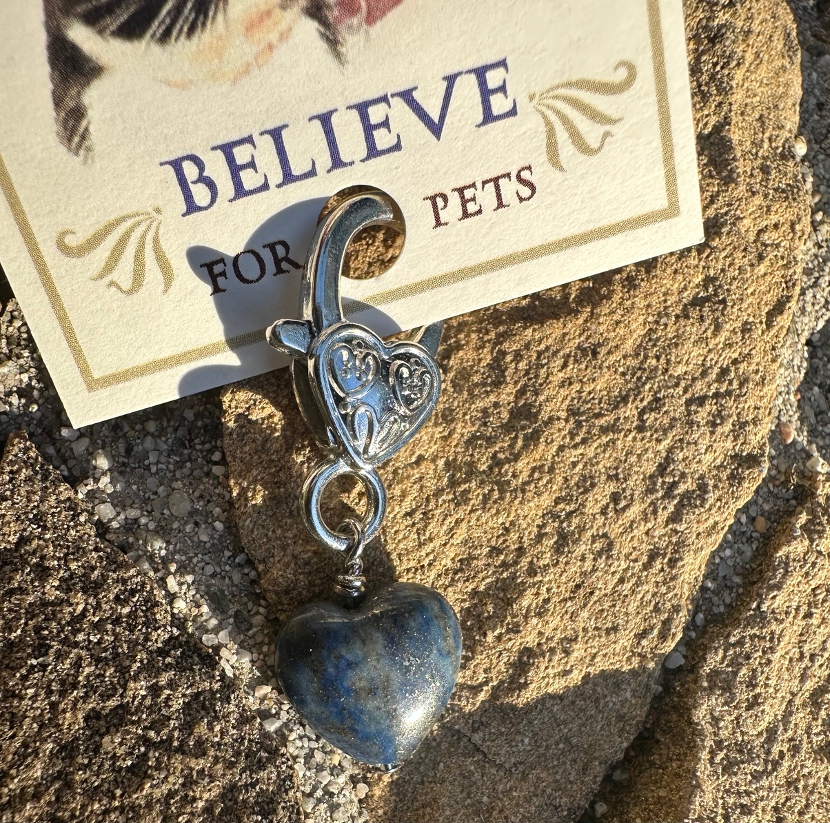 This heart shaped stone pendant clips easily onto collars, and can also be worn by pet owners as a companion healing gem for the ultimate pet connection.