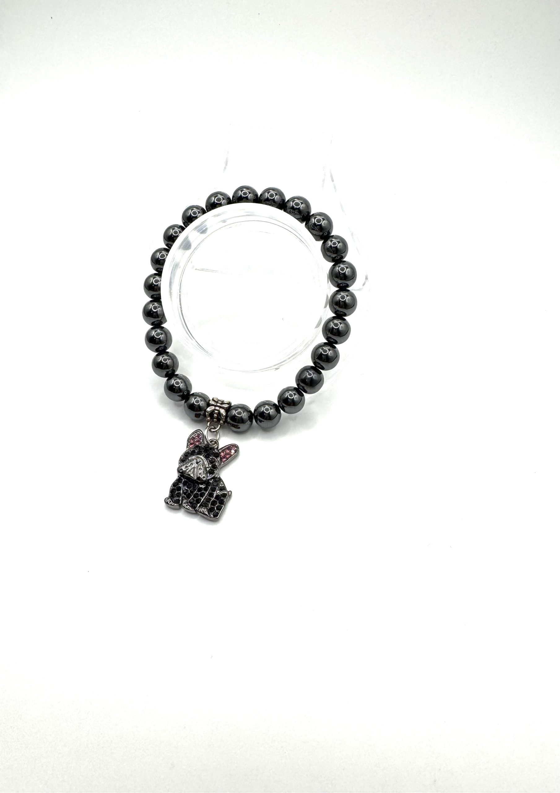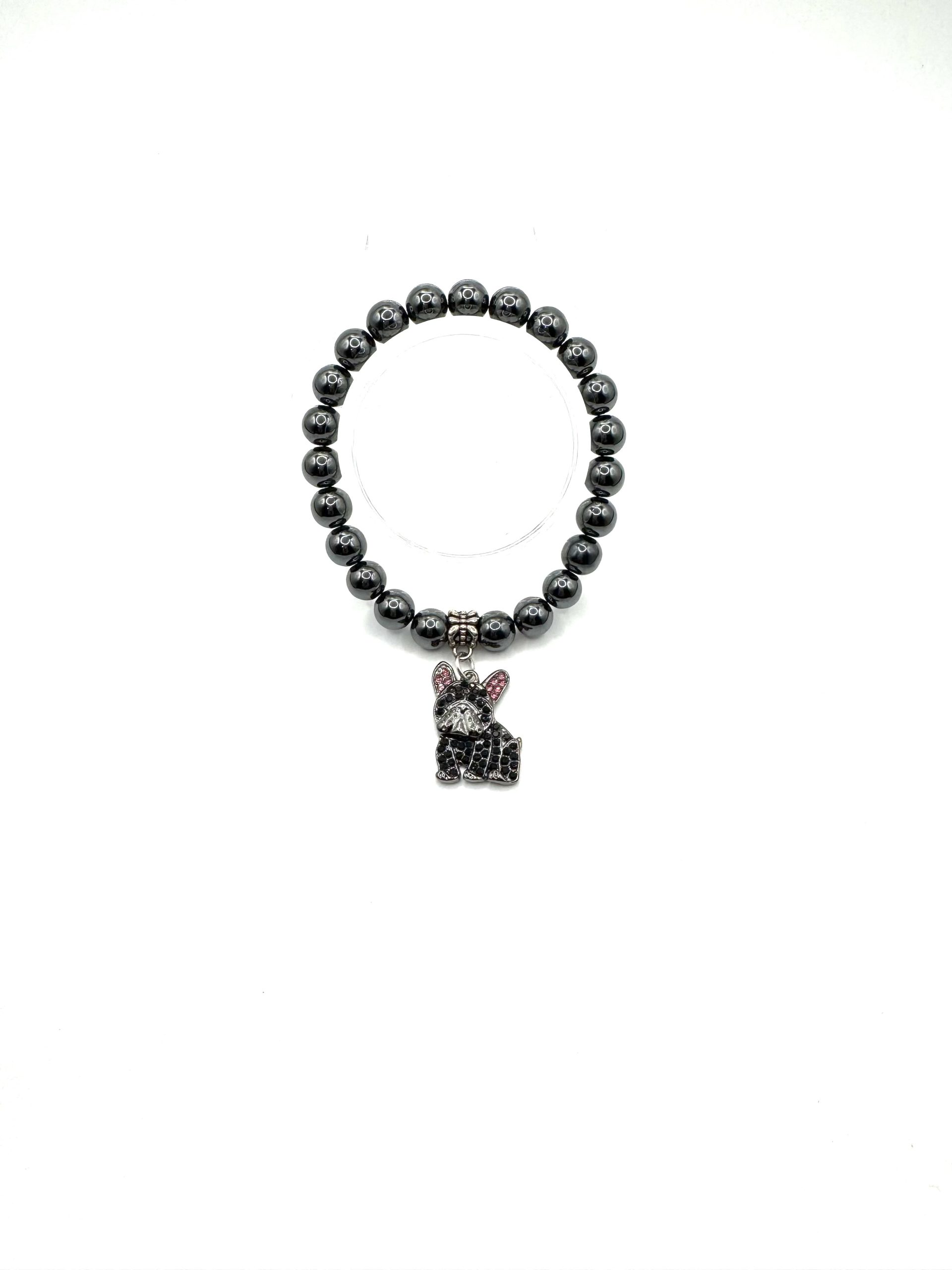 Pewter Tone Hematite Gemstone with Black French Bull Dog Charm