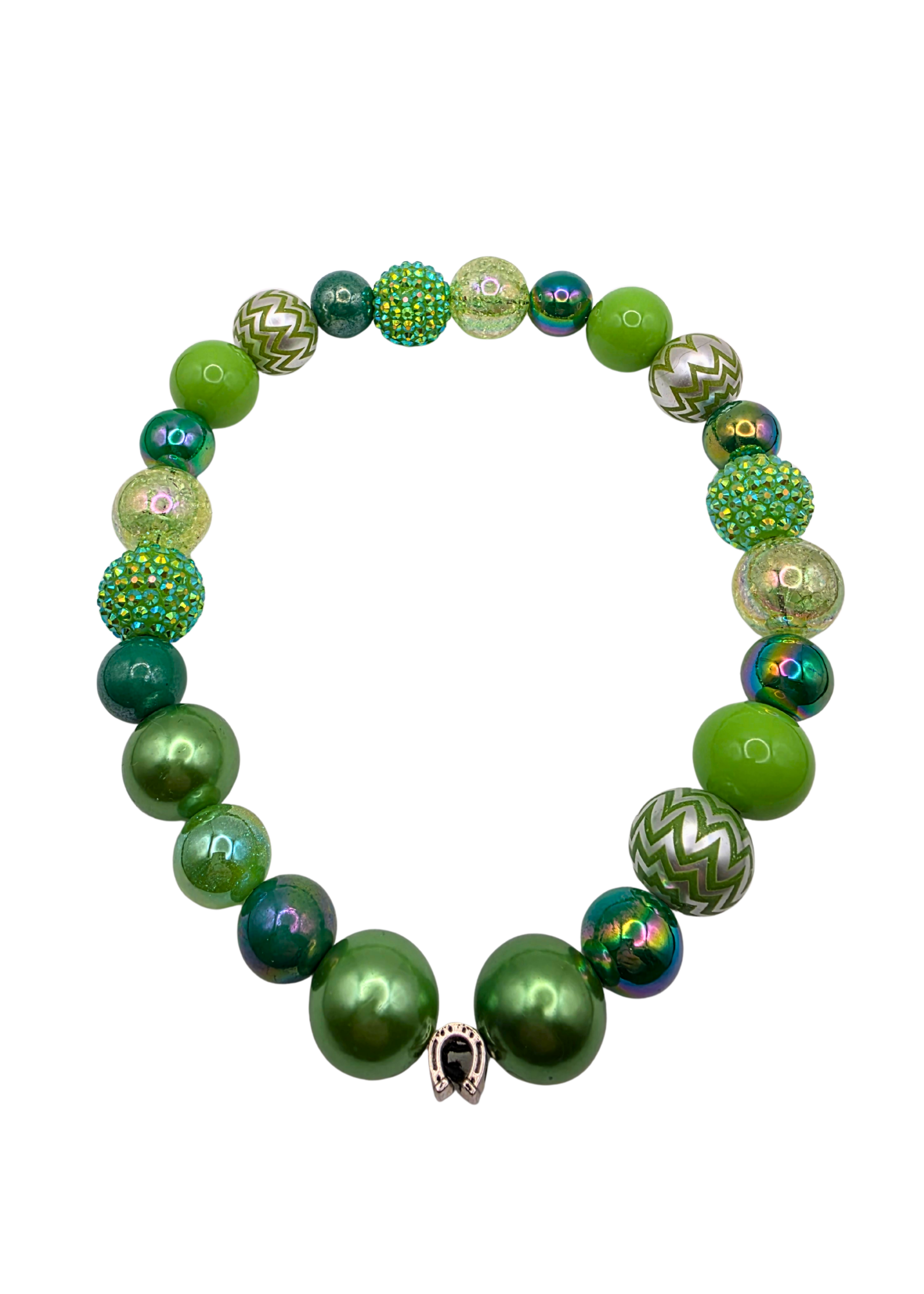 Assorted green beads with a lucky charm accent make the perfect St. Paddy’s themed dog necklace. Available in multiple sizes.
