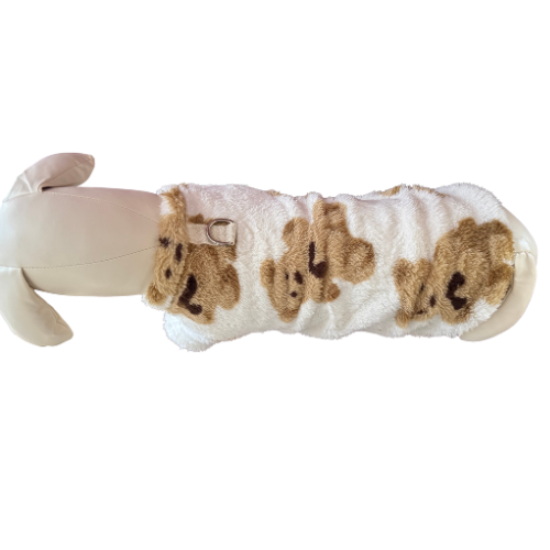 Fuzzy pullover sweater with teddy bear print for small to medium dogs.